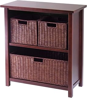 Winsome Wood Milan Wood 3 Tier Open Cabinet in Antique Walnut Finish and 3 Rattan Baskets in Espresso Finish 141[並行輸入]