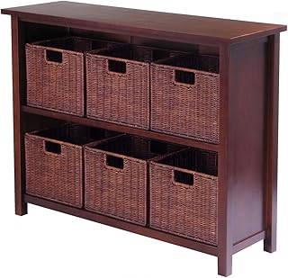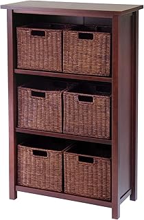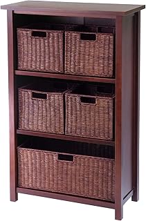 Winsome Wood Milan Wood 4 Tier Open Cabinet in Antique Walnut Finish and 6 Rattan Baskets in Espresso Finish 141[並行輸入]