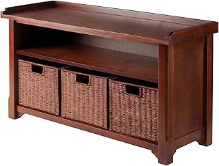 Winsome Wood MilanWood Storage Bench in Antique Walnut Finish with Storage Shelf and 3 Rattan Baskets in Antique Walnut Finish 141[並行輸入]