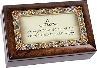 Mom An Angel Jewelled Dark Wood Finish Jewellery Music Box - Plays Tune Wind Beneath My Wings