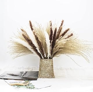 ナチュラルドライで小さなふわふわパンパスグラス 60本の茎 | 30本の茎 (ホワイト&ブラウン) & 30本の茎 ベージュ リードグラス 17.3インチ/44cm ホームボーホー装飾 花柄アレンジメント