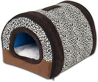 防寒対策や隠れ家としても最適 2way ヒョウ ドーム型ペットハウス 犬用 猫用 M ペットベッド 折りたたみ式 Sサイズ ブラウン/茶色 ペット用品 隠れ家 室内用 屋内 超小型犬 小型犬 ペットソファー クッション 持ち手付