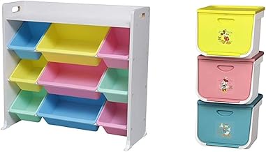 アイリスオーヤマ おもちゃ箱 天板付き パステル 幅86.3×奥行34.8×高さ79.5cm キッズ トイハウスラック TKTHR-39 & 【3個セット】 バスケット 収納 ディズニー ミッキー/ミニー/ドナルド ボックス フラップ キッズ 3個セット日本製 幅38×奥行42×高さ31.3cm FLP-MK【セット買い】