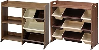 アイリスオーヤマ おもちゃ箱 天板・本棚付き ブラウン 幅88×奥行34.7×高さ79.8cm トイハウスラック HTHR-34 & おもちゃ箱 天板付き ブラウン 幅86.3×奥行34.8×高さ79.5cm キッズ トイハウスラック TKTHR-39【セット買い】