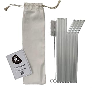 Roost Outdoors 【食品衛生法検査済】 ガラスストロー 8本セット ベントストロー 4本 ストレートストロー 4本 洗浄ブラシ 2本