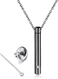 Rockyu メンズ ネックレス ブラック ジルコニア ステンレス 香水瓶 円型 遺骨ペンダント 防水 カプセル 手元供養 メモリアルネックレス 漏斗付け おしゃれ 記念日 ファッション アクセサリー (円柱+漏斗, ブラック)