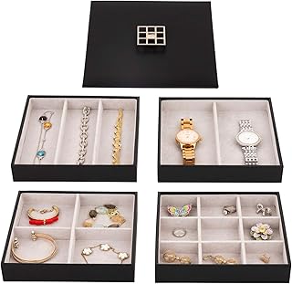 ストックYourホームスタッカブルトレイのジュエリーオーガナイザートレイジュエリーショーケース表示&ジュエリーストレージホルダーイヤリングブレスレット、ネックレス、&リング 4 Trays ブラック