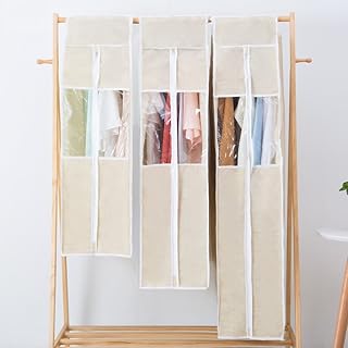 洋服カバー スーツ用 フリル調 不織布製 中身の見える透明窓付き 大切な洋服をホコリや汚れから守ります 防塵 防虫 防湿 防カビ (ベージュ, S:60x90x28cm)