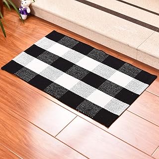 Pknoclan キッチンマット チェック柄台所マット 60x130cm 北欧 洗える 滑り止め 吸水 速乾 ずれない 滑りにくい 床暖房対応 オールシーズン適用 お手入れ簡単、ブラック ホワイト