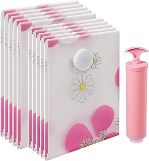 旅行用真空ストレージバッグ 衣類 掛け布団 ブランケット 枕 (10 x L) ポンプスペースセーバーバッグ付き (10 x M)