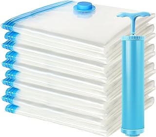 ILEBYGO 真空ストレージバッグ 8パック Mサイズ 28インチ x 20インチ スペース節約バッグ 旅行用ハンドポンプ付き 再利用可能な衣類ストレージバッグ 衣類 マットレス ブランケット 掛け布団 掛け布団 キルト 旅行に