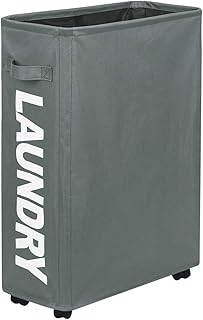 LotFancy 45L スリム 洗濯物かご ハンドル付き 22インチ 小さい 薄い洗濯物かご 狭い洗濯物かご 折りたたみ式 汚れた衣類コーナービン 収納バスケット レディース メンズ