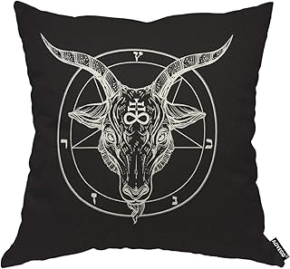 AOYEGO バフォメット サタニック ヤギの頭 スロー枕カバー 角のあるヤギの頭 五芒星 カリカル 動物 サークル 悪魔 悪魔 枕カバー 18x18インチ 装飾的 男性 女性 男の子 女の子 部屋 クッションカバー 家庭用