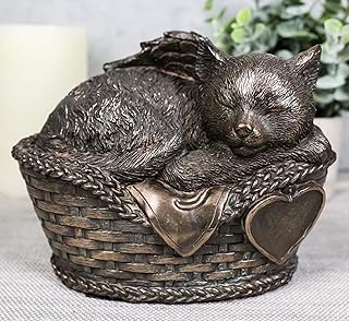 Ebros 天の天使 猫 枝編みで眠るベッドバスケット 火葬 遺灰入れ ペット メモリアル像 装飾 置物 長さ6.5インチ