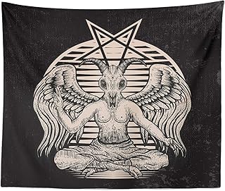 オカルトタペストリー ヤギの頭 五芒星 ゴシック 悪魔 バフォメット 悪魔 シンボル タトゥー ブラックメタル ダークアート ブラック マジック ホームインテリア 壁掛け (バフォメット 51インチ x 59インチ)