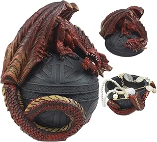 Ebros ケルトレッドドラゴンエッグボックス 高さ6.5インチ 神話ガーディアンドラゴンフィギュア ジュエリーボックス