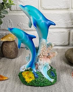 Ebros Sea World 2本のボトルノーズイルカ 水泳 コーラルリーフ 像 高さ5.5インチ 海洋 海洋 装飾 置物