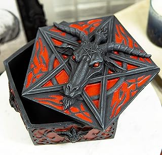 Ebros Pentagram Sabbatic Goat バフォメット 多目的装飾ジュエリーボックス テンプル騎士 シギル 悪魔 教会 礼拝 記念品 小物入れボックス (ブラッドレッド)