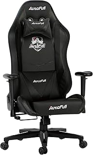 【Amazon.co.jp 限定】 AutoFull(オートフル) ゲーミングチェア オットマン付き 椅子 オフィスチェア リクライニング パソコンチェア ハイバック ロッキング レーシングチェア ワークチェア レザー e-sports競技 多機能 人間工学 AF070 「競技の盾」 ブラック(オットマン付き)