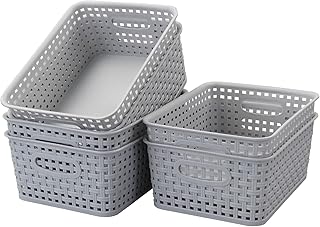 Obston スリムプラスチックバスケット 積み重ね可能なバスケット容器 6個パック