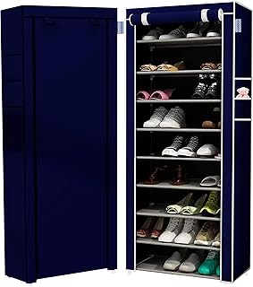 靴ラック 9段 積み重ね可能 靴ラック 防塵 不織布 カバー 27ペアの靴棚 玄関 廊下 靴収納 オーガナイザー クローゼットオーガナイザー 収納 靴ラック (ネイビー)