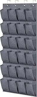 KEETDY ファブリックドア掛けシューズラック クローゼット用 吊り下げ 靴オーガナイザー 24個の大きなポケット付き メンズ レディース キッズ グレー