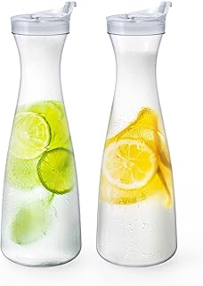 Jucoan 2パック 56オンス / 1.6L Lサイズ プラスチック ウォーターカラフェ 透明 ジュース ピッチャー ボトル フリップトップ蓋付き 狭いネックデザイン ジュース 飲み物 お茶用