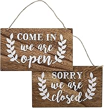 リバーシブル 吊り下げ式 素朴な木製 オープン&クローズビジネスサイン 10 x 6インチ (2パック)