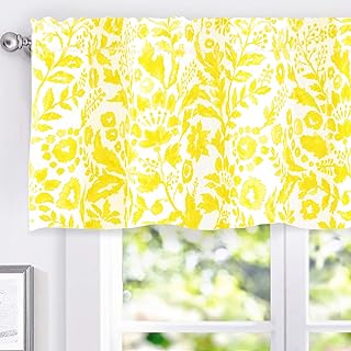 DriftAway Julia 水彩 咲き乱れる花 花柄裏地 断熱 ウィンドウカーテン バランス ロッドポケット 52インチ x 18インチ ヘッダー2インチ イエロー 2パック