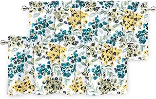 DriftAway Oliver 水彩フラワーリーフ ボタニカルパターン 断熱遮光カーテン 裏地付き ロッドポケット ウィンドウカーテン バランス キッチンカフェ用 52インチ×18プラス 2インチ ヘッダー イエローグリーン 2パック