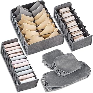 Linone 下着収納ボックス 下着収納ケース 折り畳み 引き出し 仕切り 靴下収納 小物収納 ブラ収納 コンパートメント収納ボックス 4点セット