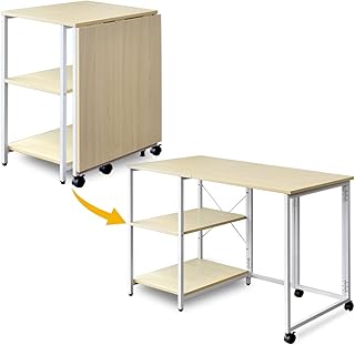 ottostyle.jp 折りたたみデスク 110cm×55cm×71.5cm 【ナチュラル】 使いたい時に天板を広げて使える 省スペース 在宅勤務 リビング学習 テレワーク 作業台 収納棚 2段 木目調 スチールフレーム