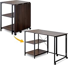 ottostyle.jp 折りたたみデスク 110cm×55cm×71.5cm 【ウォールナット】 使いたい時に天板を広げて使える 省スペース 在宅勤務 リビング学習 テレワーク 作業台 収納棚 2段 木目調 スチールフレーム