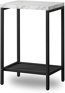 ottostyle.jp アイアンサイドテーブル 【大理石柄/ホワイト】 ハニカム構造天板 スチールフレーム アジャスター付 ベッドサイド 小物置き 2段式