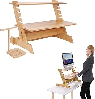UNHO スタンディングデスク 卓上 キーボード コンパクト パソコン台 デスクトップ 高さ調整 モニター台 机上デスク オフィスワークテーブル 昇降 pc台 在宅勤務/テレワークに向け 立ち作業 姿勢矯正 竹製