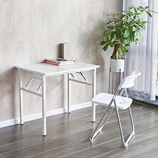 KR 折りたたみ デスク チェアセット 幅80cm×奥行60cm 木製 テーブルチェアセット コンパクト オフィス PC パソコン デスクセット チェア付 学習机 テレワーク 机 イス セット 在宅勤務 (White)