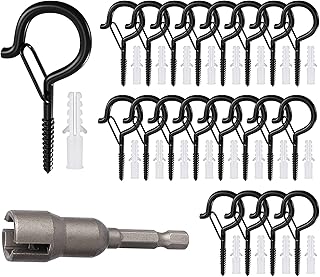 Zzbety ネジフック 安全バックルデザイン クリスマスライト ハンガーフック 屋外ワイヤー フェアリーライトとストリングライト 簡単に取り外せる ウィングナットドライバー1個付き 20個