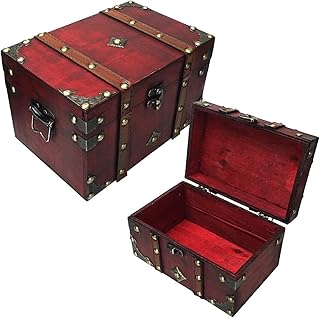 レトロ宝箱 アンティーク風 アクセサリーボックス 小物入れ 見せる収納 インテリア (大小セット)