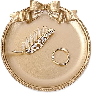 FUKUSHOP ジュエリートレイ アクセサリートレイ ジュエリーホルダー 小物収納トレイ 玄関トレイ 樹脂製 コイントレー 釣り銭トレー 鍵置き 小物置き 指輪 ピアス ネックレス 小物入れ 収納小皿 リングトレー ジュエリー収納 可愛い おしゃれ インテリア 置物 ボウノット (ゴールド)