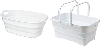 ISETO (伊勢藤) バスケット ホワイト 約幅46.3×奥行29×高さ19.6cm ソフトバスケット I-581 & 折りたたみ洗い桶 キッチンソフトタブ 6.6L ホワイト I-590【セット買い】